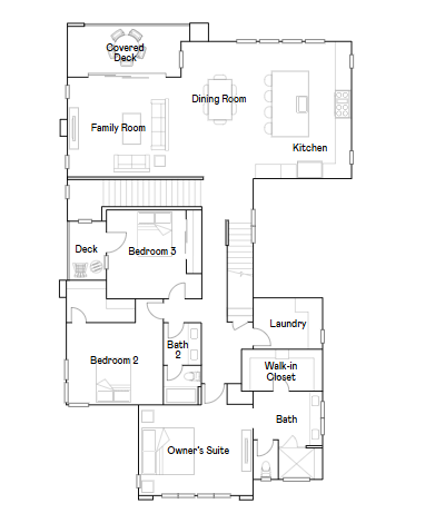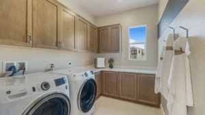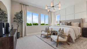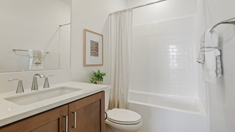 This new three-story home boasts a modern and spacious design, with two floors offering convenient access to a covered patio for seamless entertaining. The main living area can be found on the second floor, with an inviting open-concept layout consisting of the kitchen, dining room and family room. Three bedrooms are tucked away near the front of the home, including the luxurious owner’s suite. A versatile bonus room and an additional bedroom share the third level.